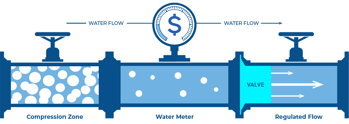 With the Smart Valve™ installed on the customer’s side of the meter, city pressure is maintained upstream past the meter and into the municipal main. Air bubble volume is suppressed before reaching the meter. Only actual water consumption is recorded. Your bill finally reflects reality.